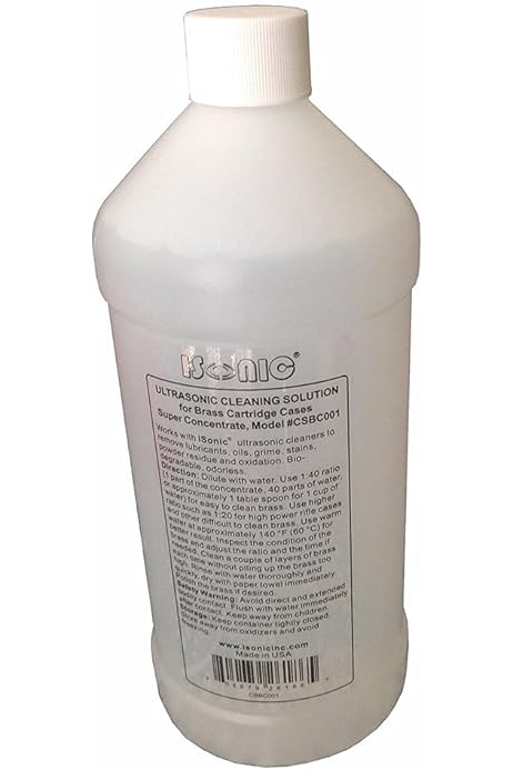 With this brass cleaning solution you can clean your brass for reloading in your wet tumbler or the ultra sonic. Fill the tank to half full of water. Try distilled water heated in a glass container in the microwave dawn dish soap and lemishine 8 minutes at about 130f gets my primer pockets clean.